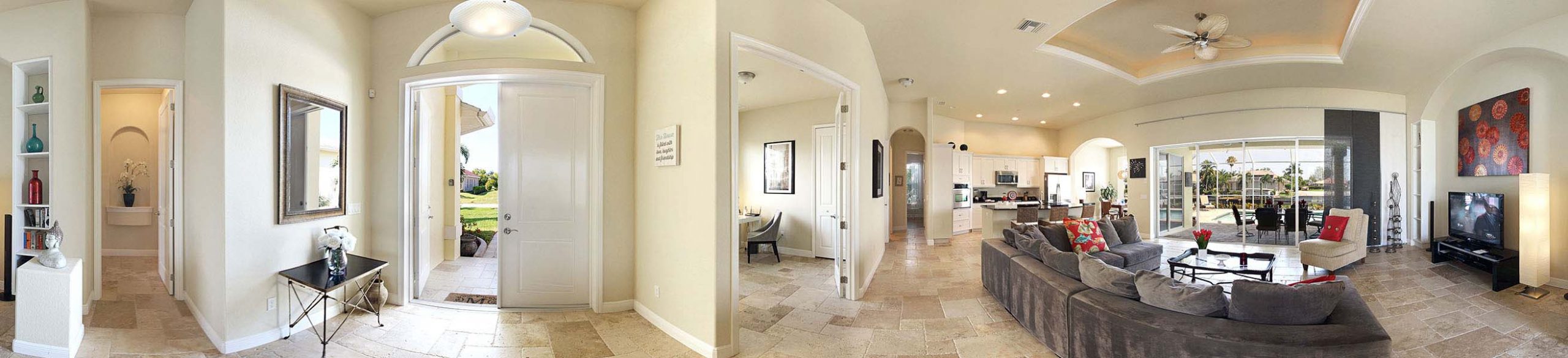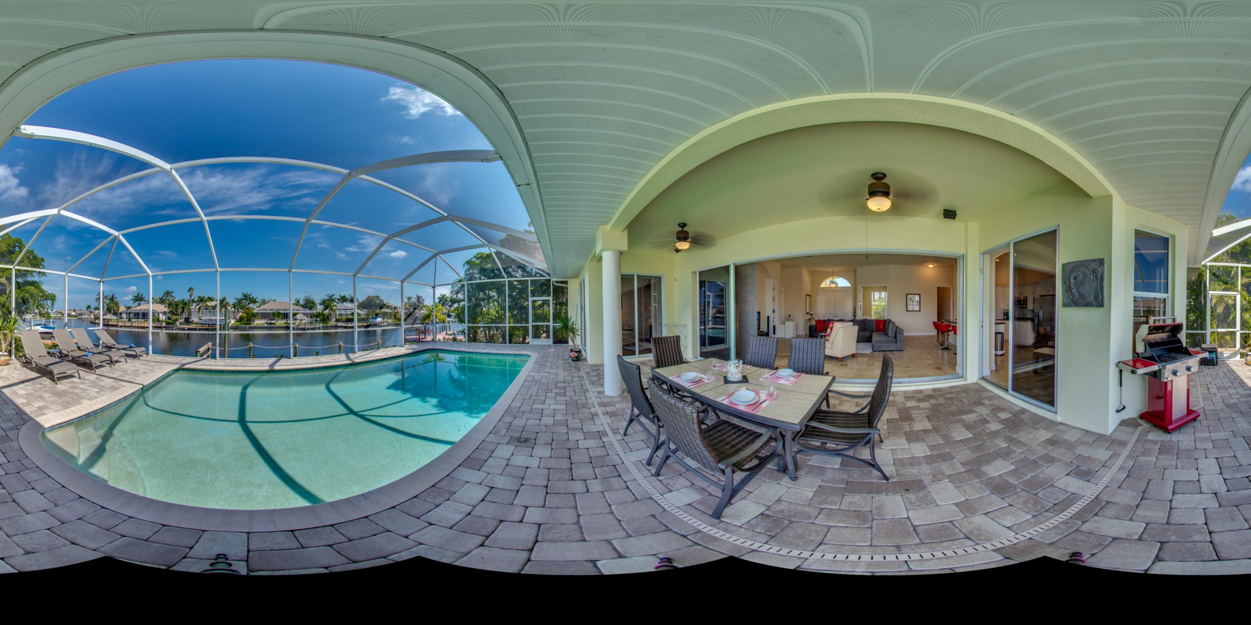 The villa is situated in a sought-after location at a channel junction south-west of Cape Coral Parkways. There are several restaurants in vicinity which can easily be reached in a short walk or by bicycle. It is an ideal starting point for boat trips, and it is only a short distance to the harbour. A private jetty is on the premises. Excursions to Caloosahatchee-River, Pine Island and to the pristine beaches of Sanibel and Captiva Island with their famous array of shells are the obvious thing to do. Fort Myers Beach with its large number of leisure attractions and trending beach bars and restaurants offer a nice change as well.